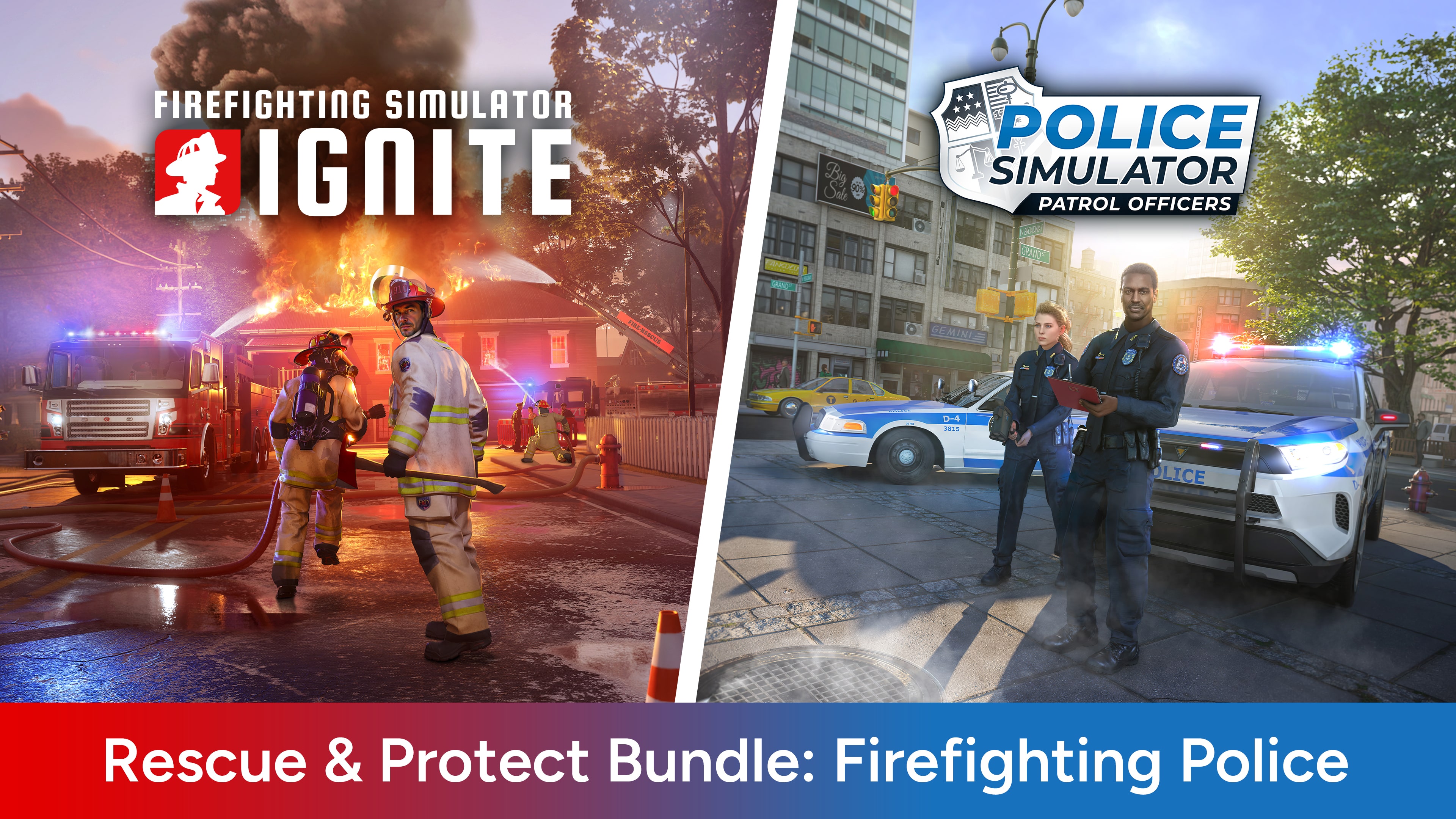 UNITED AGAINST FIRE. Face unpredictable dangers head-on, fight perilous fires with your crew, and save lives in Firefighting Simulator: Ignite. Step into the boots of a U.S. firefighter in a sprawling city in the American Midwest, where every mission pushes your skills to the limit. Experience the rush of firefighting in stunning visual quality in an intuitive and cooperative multiplayer mode with 3 friends or with the help of your NPC controlled crew. Battle raging and dynamic flames, heat, and smoke – all simulated in real time. Cutting-edge physics & graphics systems powered by Unreal Engine 5 let you experience firefighting immersion like never before.
