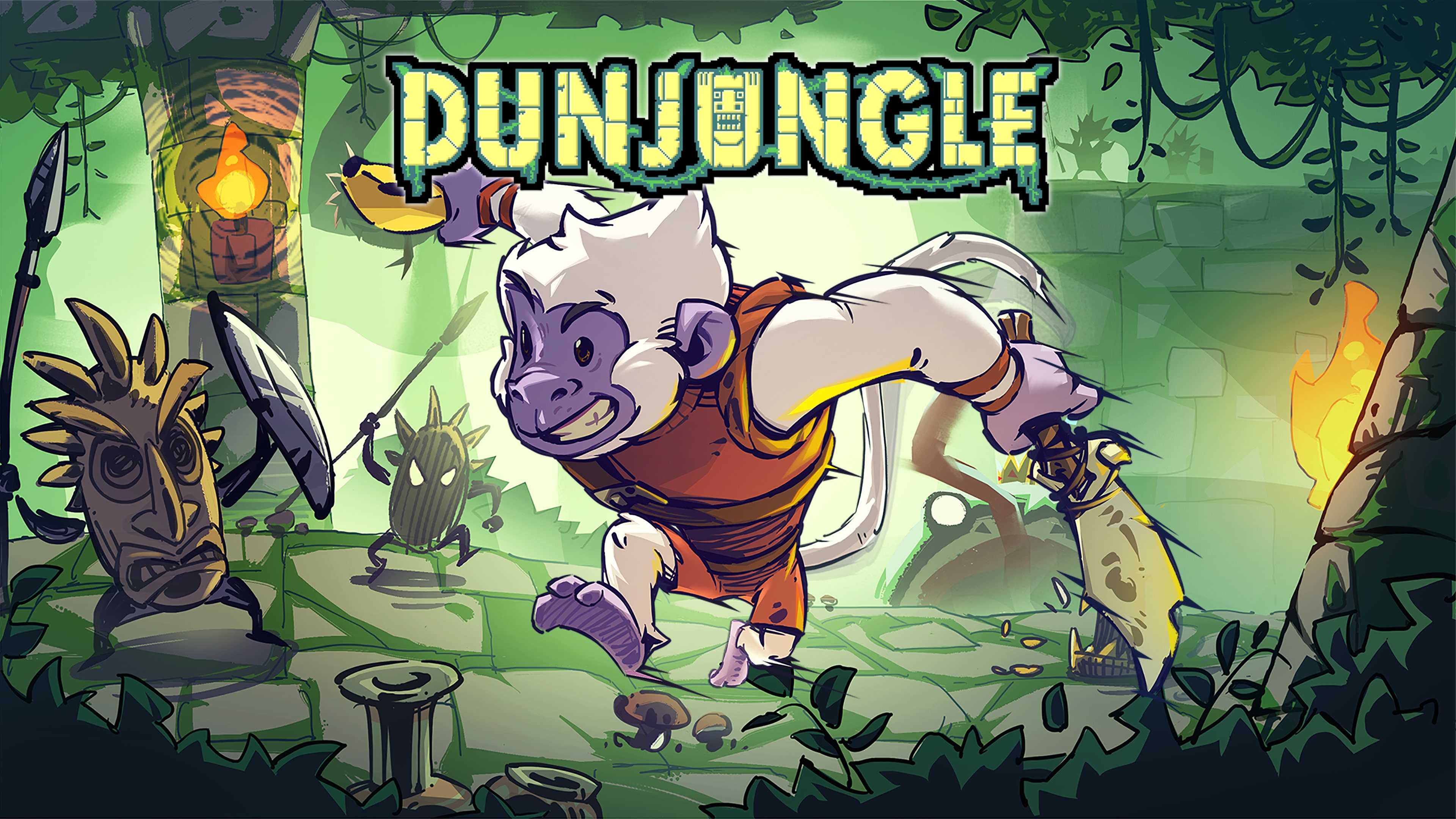 Dunjungle is an action-packed roguelite about a monkey hero, adventuring into a jungle under the menace of a corruptive power that is transforming its peaceful creatures and destroying everything on its way.